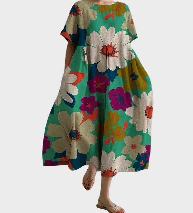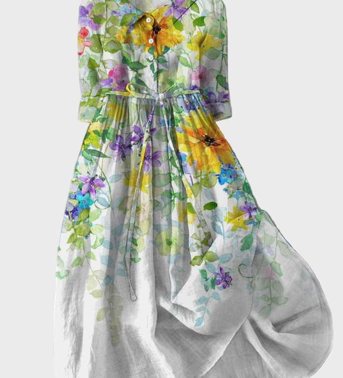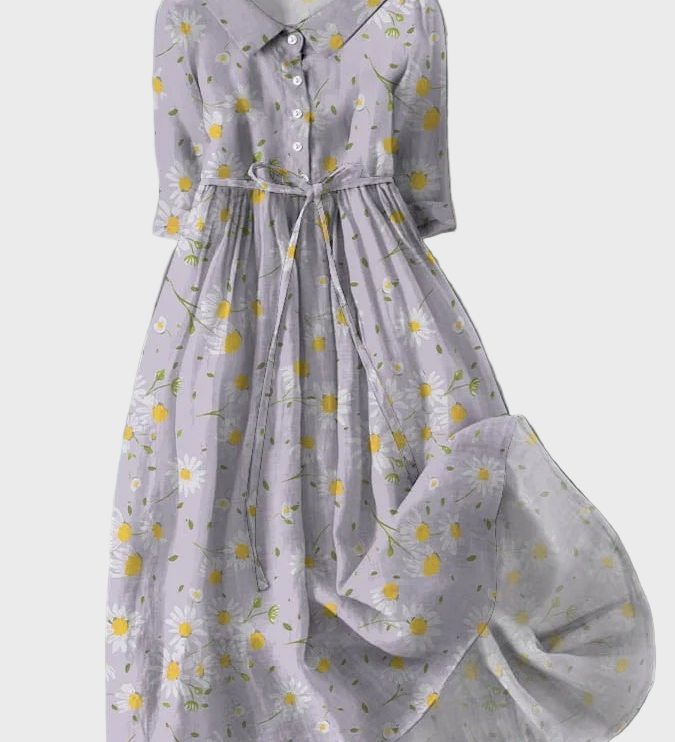 Neformalna Lanena Obleka z Naravno Udobnostjo in Elegantno Preprostostjo