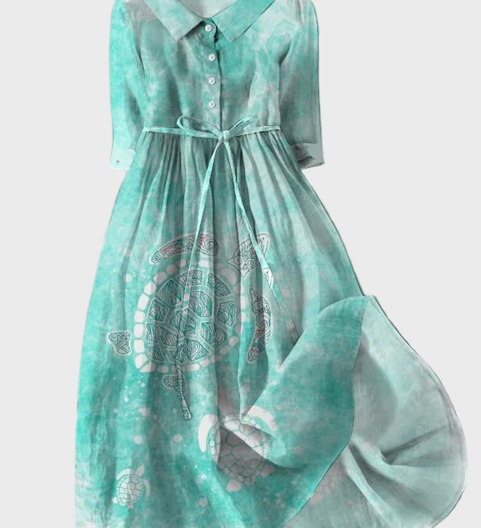 Turkizna obleka z vzorcem morske želve