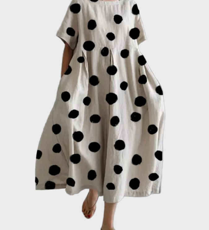 Večbarvna obleka s gumbi in 3/4 rokavi