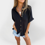 Ta bela srajca je popolna izbira za vsak trenutek dneva. Elegantna, udobna in enostavna za kombiniranje, bo postala osnovni kos tvoje garderobe.