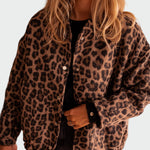 Ta stilna jakna takoj doda dinamičen in moden pridih vsakemu videzu. Njena udobna zasnova v kombinaciji s gumbi na sprednji strani jo naredi praktično in enostavno za nošenje, medtem ko leopardji vzorec izraža eleganco s karakterjem.