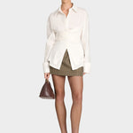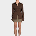 Poudarite svojo eleganco in dinamiko s to čokoladno srajco z zavezo, ki jo kombinirate z mini karirasto krilo. Izpopolnjen dizajn z zavezo v pasu poudari silhueto in ponuja videz, ki združuje ženskost in profesionalnost.
