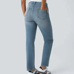 Odkrijte Jeans Hlače z Visokim Pasom – kos, ki združuje vsakodnevno udobje in sodoben stil. Z elastično prileganjem in klasičnim oblikovanjem je idealna izbira za vse ure dneva.