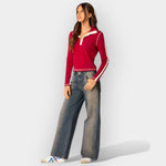 Te jeans hlače ponujajo popolno ravnotežje med stilom in udobjem, z nizkim pasom in laskavim krojem. Idealne so za vsakodnevne kombinacije z modernim značajem.