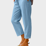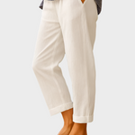 Osvežite svojo poletno garderobo s temi belimi skrajšanimi hlačami. Lahke, zračne in elegantne — to je kos, ki se poda vsem.