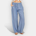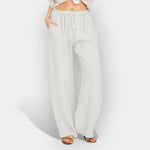 Te hlače združujejo naravno eleganco z udobnim stilom, zahvaljujoč hladnemu lanenemu materialu in udobnemu kroju. Idealne za vroče dni in brezskrbne, stilne videze.