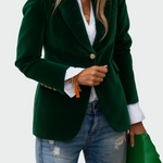 Večna jakna, ki izžareva eleganco in stil. Njena klasična zasnova v kombinaciji s sodobnim dizajnom jo naredi idealno izbiro tako za poslovne nastope kot tudi za bolj sproščene kombinacije. Ima gumb na sprednji strani in skrbno oblikovane podrobnosti, ki dodajajo dodatno finost.