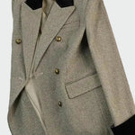 Impozantna jakna z dvojnim zapenjanjem, ki daje brezčasno eleganco vsakemu videzu. Ima elegantno ovratnik z kontrastno teksturo in sprednja gumbka, ki dopolnjujeta sofisticiran videz. Idealna za casual chic kombinacije, pa tudi za poslovne priložnosti.