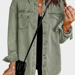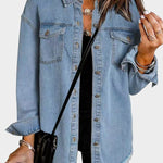 Denim srajčna jakna je popoln kos za casual in street style videze. Z gumbi po celotni dolžini, žepi na prsih in raztrganim robom združuje udobje in slog. Enostavno se nosi čez vašo najljubšo majico ali zaprto kot srajca, kar zagotavlja prilagodljivost in sodoben videz.