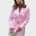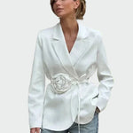 Romantično in elegantno sako, ki izstopa zahvaljujoč pasu-rozam, kar daje ženstvenost in brezčasni slog. Prilagojen kroj izpostavlja silhueto, medtem ko podrobnosti sakoja omogočajo, da je idealno za posebne priložnosti in šik videze. Odlično se kombinira z krilom ali hlačami za videz, ki pritegne poglede.