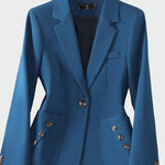 Impozantno sako z ženskasto prileganjem, ki izstopa po elegantnih detajlih. En gumb na sprednji strani daje minimalistično eleganco, medtem ko dekorativni gumbi na žepih ponujajo sodoben pridih. Idealno za poslovne sestanke, pa tudi za večerne izhode s stilom.