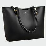 Elegantna ženska torba za ramo v črni barvi, idealna za vsakodnevno uporabo in poslovne nastope. Narejena iz visoko kakovostne umetne usnje, ponuja vzdržljivost in stil. Ima udoben notranji prostor za vse potrebne stvari, medtem ko dvojni naramni trakovi zagotavljajo udobno nošenje. Zlate podrobnosti dodajajo diskreten občutek razkošja.