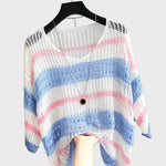 Lahkotna majica z odprtim pletenim vzorcem, ki nudi udobje in stil. Njena zračna silhueta omogoča svobodo gibanja, medtem ko njena minimalistična estetika omogoča, da je primerna za vsakodnevne in bolj posebne priložnosti. Časovno brezčasni kos, ki izstopa po svojem izpopolnjenem značaju.
