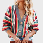 Pletena jopica z retro navdihom, ki izstopa po svoji edinstveni naravi. Udobna prileganje nudi enostavnost v vsakdanjem življenju, medtem ko črtast vzorec dodaja brezčasno estetiko. Kosek, ki se odlično ujema tako s casual kot tudi bolj elegantnimi videzi.