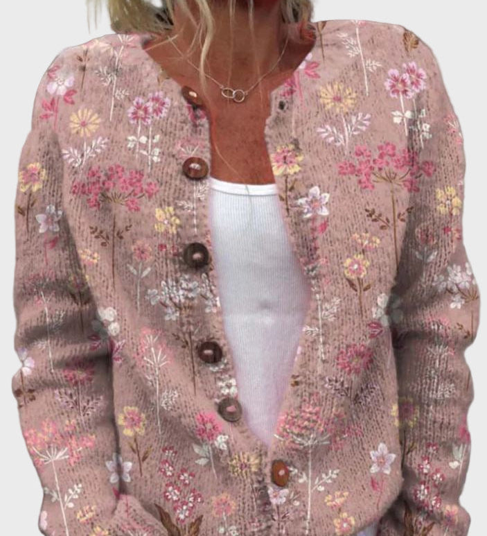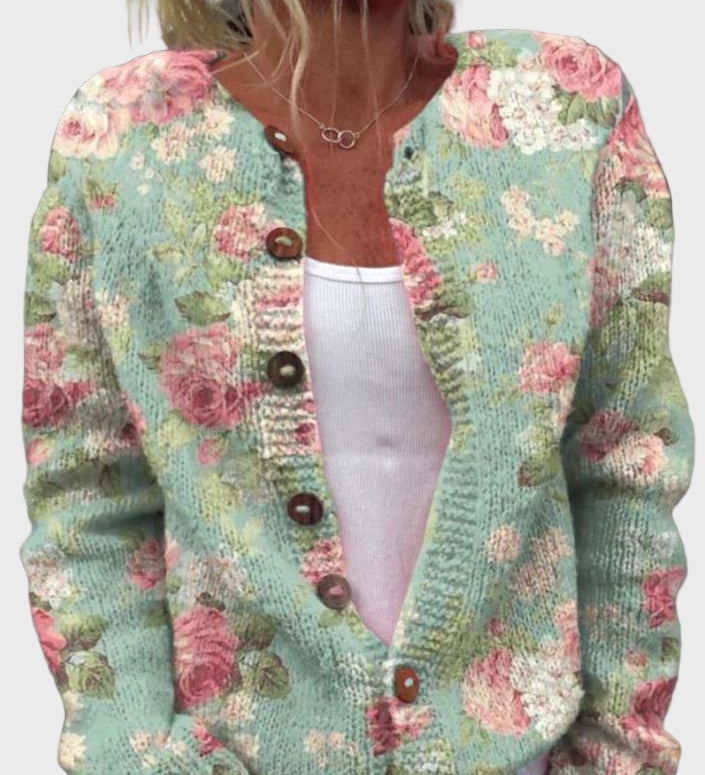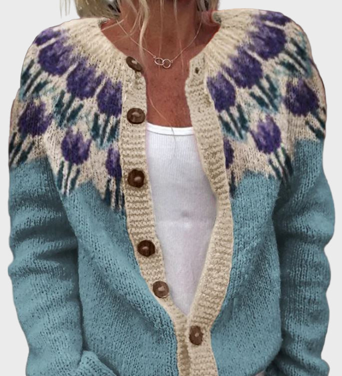 Eleganten Pleteni Jopič z Cvečitimi Motivi