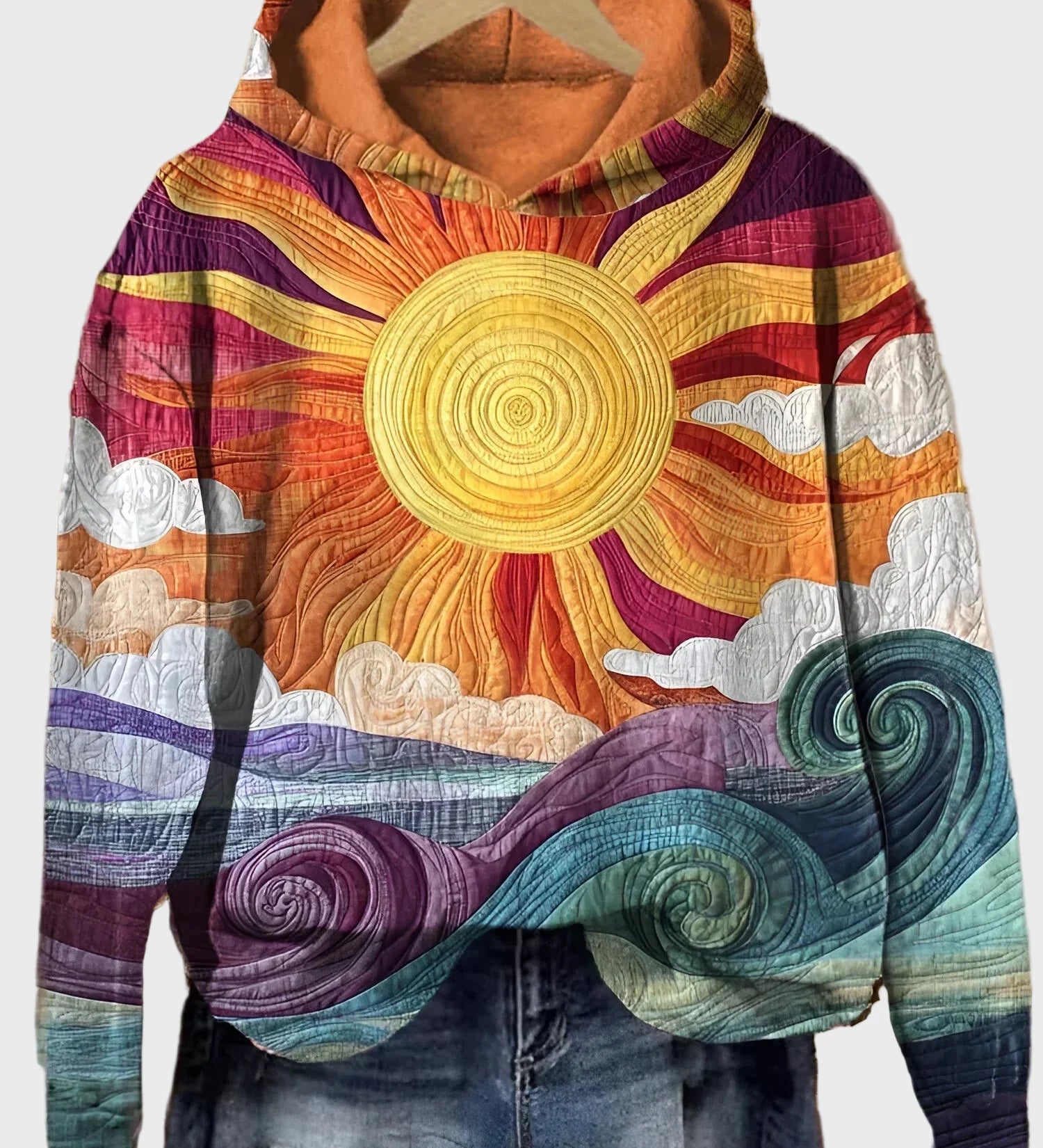 Retro pulover z motivom sončnega žarka