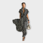 Elegantna obleka, ki se prilagaja vsakemu slogu in daje popoln končni pečat vsaki podobi. Njena prilagodljiva zasnova jo naredi idealno za vse priložnosti, od sproščenih do bolj formalnih. Kos, ki združuje praktičnost, udobje in brezčasno eleganco.