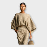Eleganten komplet, ki se prilagaja vsakemu slogu in daje popoln končni pečat vsakemu videzu. Njegov prilagodljiv dizajn ga naredi idealnega za vse priložnosti, od sproščenih do bolj formalnih. Kosi, ki združujejo praktičnost, udobje in brezčasno eleganco.
