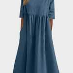 Osvežite svojo garderobo s to izpopolnjeno modro obleko. Idealna za vsakodnevne nastope, pa tudi za bolj uradne priložnosti, nudi udobje in stil pri vsakem vašem koraku.