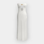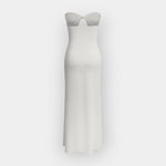 Eleganten in zračen, ta obleka brez naramnic poudarja ženskost z diskretno eleganco. Idealna za sončne dni in poletne večere s stilom in udobjem.