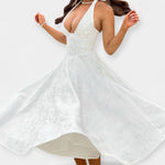 Midi obleka z odprtim hrbtom in korzetno zasnovo