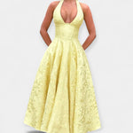 Izpopolnjena obleka, ki izpostavlja ženskost v vsaki podrobnosti. Idealna za poroke, večerne večerje in elegantne dogodke, ki zahtevajo diskretno razkošje.