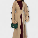 Stiliziran Kardigan in Obleka v Kombinaciji z Črtasto Dekoracijo