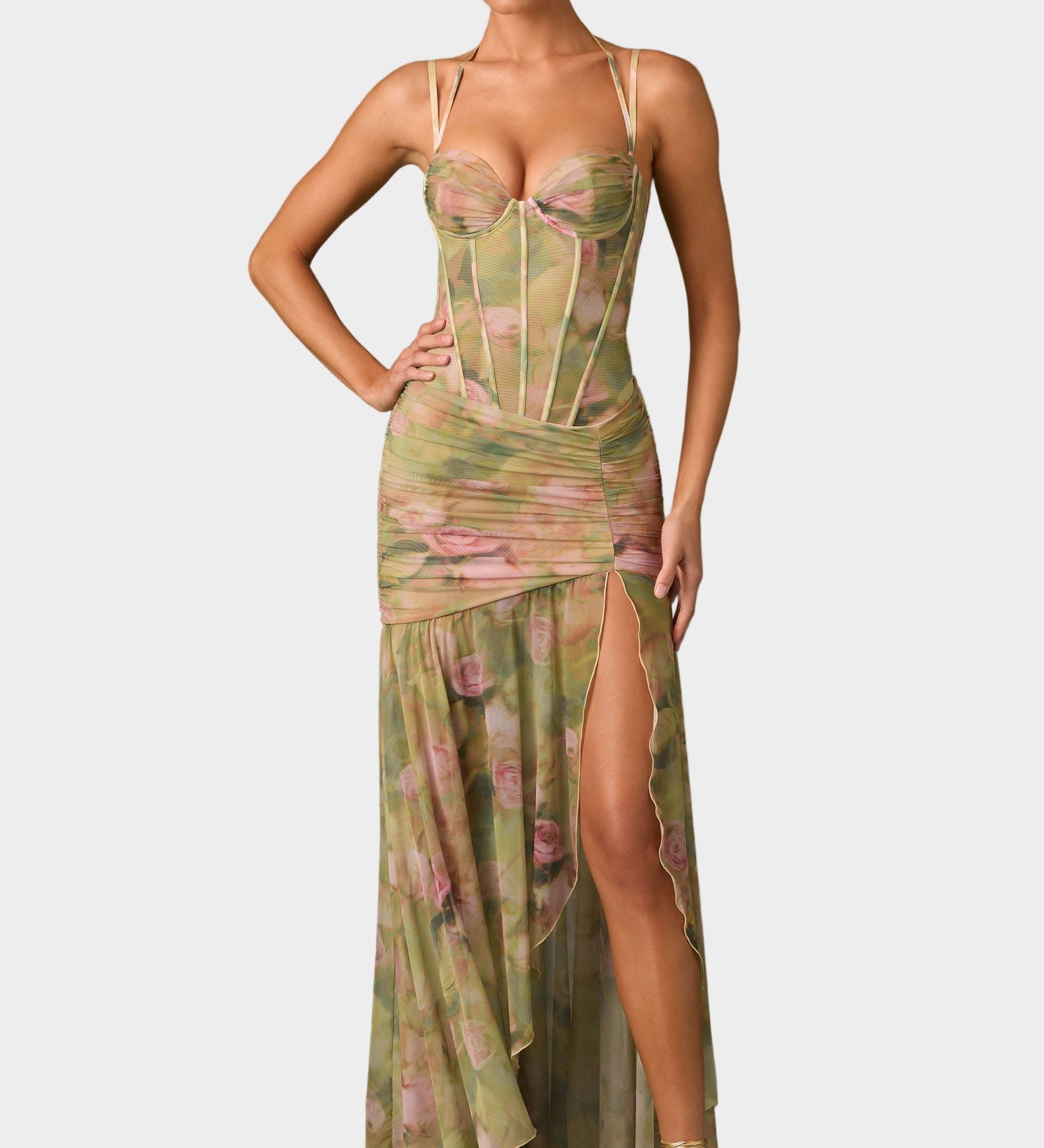 Dolga obleka z elegantnim in izpopolnjenim korzetom