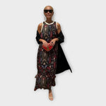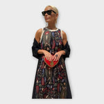Obleka, ki izžareva eleganco in brezčasno prefinjenost, ponuja popoln končni dotik vsaki podobi. Njena prilagodljiva zasnova jo naredi idealno za vse priložnosti, od sproščenih do bolj formalnih. Z mehko teksturo in ohlapnim krojem je osnovni kos, ki izpostavi vsak garderobni kos.