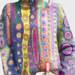 Pleteni pulover z edinstvenimi vzorci sonca, ki ponuja toplino in eleganco. Njegova sproščena kroja zagotavlja udobje pri vsakodnevni uporabi, medtem ko posebna estetika naredi, da je idealen za sproščene, pa tudi bolj posebne priložnosti. Kosi, ki združujejo praktičnost in stil.