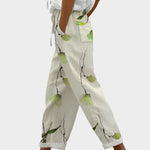 Prinesi naravo v svojo vsakodnevno oblačilno izbiro s temi lahkimi hlačami z botaničnim printom. Idealne za sproščujoče izlete in trenutke počitka.